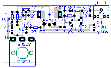 图4-3-1是S2107型收音机印刷电路板正面(元件安装面)的示意图。 图4-3-1 为了方便初学者安装,印刷电路板上所有元件的安装孔旁都印有元件标号及参数,初学者只要“对号入座”即可。虽说如此,有些元件在安装时还是要小心在意,如:集成电路、三极管的三只脚不能弄错,发光二极管和电解电容的正负极如何分别,这些都可以对照图4-2-3来识别。另外,焊接时注意不要出现虚、假、错焊,焊接完毕后可以用镊子将各个元件摇动一下,看有无松动,碰接短路的地方。元件安装的高矮也要注意整齐美观,预留引脚的长度要适中。各个电阻的色环也要认清,不可张冠李戴。图4-3-1中标注有“1”、“2”的地方,接磁棒线圈,标注了“3V+”、“3V-”的地方接电池正负极。全部元件焊接完毕后,最好再检查一番,确认没有错焊的地方才可接通电源,插上耳机试听。打开电源开关,这时发光二极管发出亮度适中的光,且耳机中也应该有“嗒”的一声。继续转动电位器RP到适中位置,再拨动双连电容C1的旋钮就可以收到电台的播音声了。