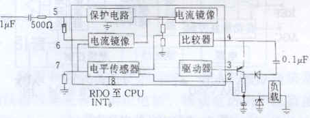系统上线电路的功能是检测程控交换机发送的振铃铃流信号,然后通过中断方式通知8051单片机,根据软件设定,闭合系统上线/离线/复位开关电路,开启UrMF信号解码电路和语音提示电路与电话用户线的连接。上线电路的主要部分是铃流检测电路。铃流信号是当远端用户呼叫电话远程控制系统时,由程控交换机向电话远程控制系统发送的控制信令。系统采用TCA3385芯片作为铃流检测电路的核心部件。TCA3385是一种性能稳定的振铃信号转换、检测器件,常用于电话机、应答器等仪器仪表。它的PDO端(如图5)是振铃检测输出端,在振铃信号稳定后,此端会变为高电平输出。RDO端可直接与8051单片机相连,作为8051的中断信号INT0。TCA3385的内部功能及外部电路如图5所示。