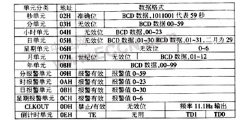 PCF8563 是低功耗的 CMOS 实时时钟/日历芯片,提供 1 个可编程时钟输出、 1 个中断输出和掉电检测器,所有的地址和数据通过 I 2C 总线接口串行传递。最大总线速度为 400kbit / s ,在数据交换时只要按照 I 2C 总线模式进行操作,对时序的要求也不是太高。 PCF8563 内部寄存器地址与数据格式描述如附表所不 .