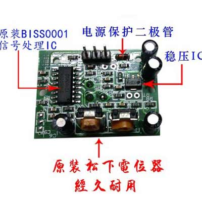 第七、人体感应模块采用双元探头,人体的手脚和头部运动方向与感应灵敏度有着密切的联系,而且红外模块的特性决定了无法精确控制感应距离。