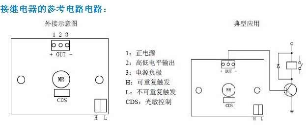 2.光敏控制(可选):模块预留有位置,可设置光敏控制,白天或光线强时不感应。光敏控制为可选功能,出厂时未安装光敏电阻。如果需要,请另行购买光敏电阻自己安装。